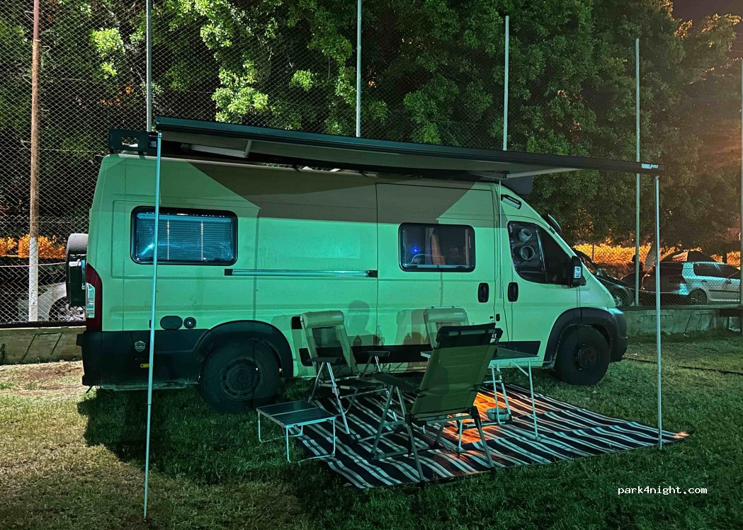 An official campsite and picnic place. Nice shade, beautiful environment, beach is only ok. Showers are in bad condition, also toilets are not very clean. There is running water. You can park away from busy street, but some noise will still be heard. We enjoyed our stay here, its also very cheap. Electricity is free, however only standard stuco plugs. Sorry I didnt take any photos, but you can check it from the street.