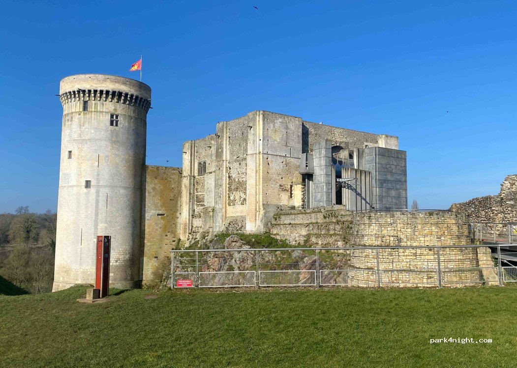 Parking vaste et tranquille pour une nuit au pied du Château de Guillaume le Conquérant.