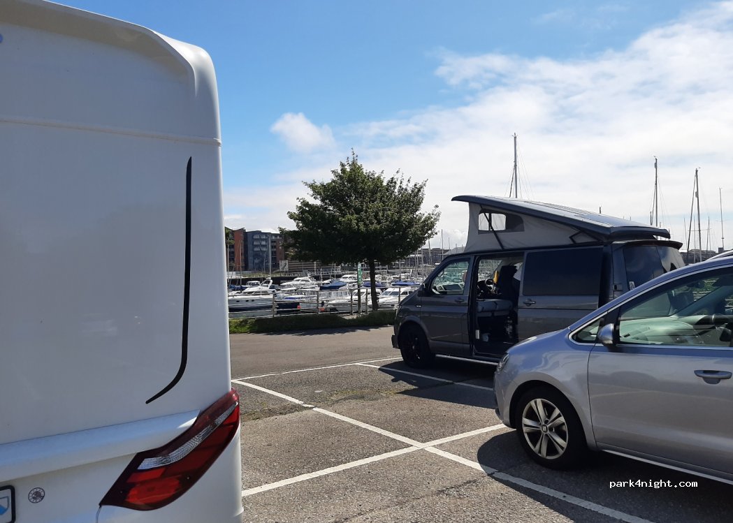 Lovely place right on the marina 10 seconds from the beach there were 3 vans there camping no1 bothered us the car park was rammed with fishermen when we woke up not 1 person batted a eyelid
