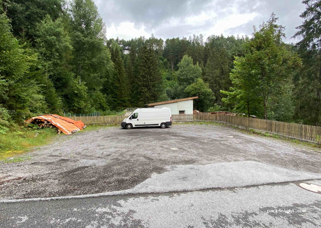 Two parking areas, quiet, forest. Near “Bungy -Stüberl“ (Restaurant and refreshments, but closed when we were there) overlooking gorge and interesting suspension bridge. (Benni Raich-Brücke). Nice walk through Pitzenklamm gorge.