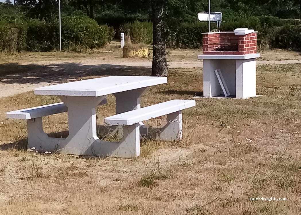 Aire sympa, emplacements sur herbe. borne d'entrée en panne, dépannage par distance rapide. coin table de pique nique & barbecue.