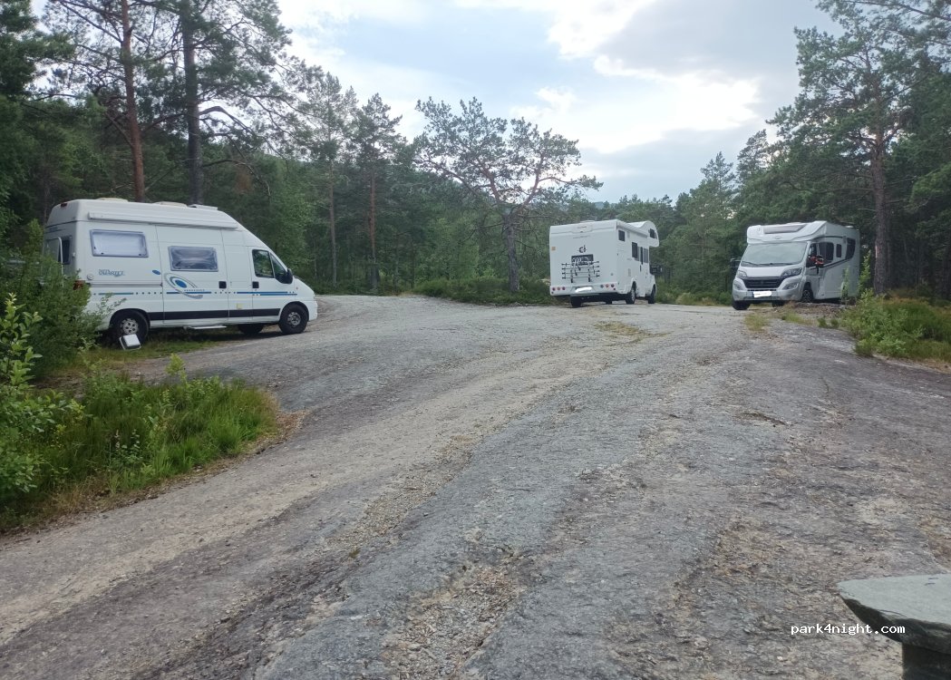 Superbe endroit pour dormir ( emplacement pour 3 vans). Vue magnifique sur le fjord en contre bas et table de pique nique au bord du fjord. Nuit très calme.