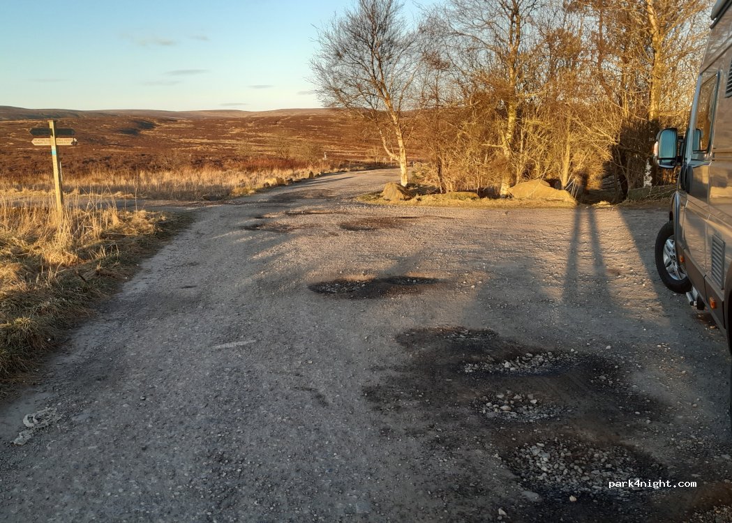 Gravel car park on penistone moor. Nice for a quick overnight spot. Popular with dog walker.