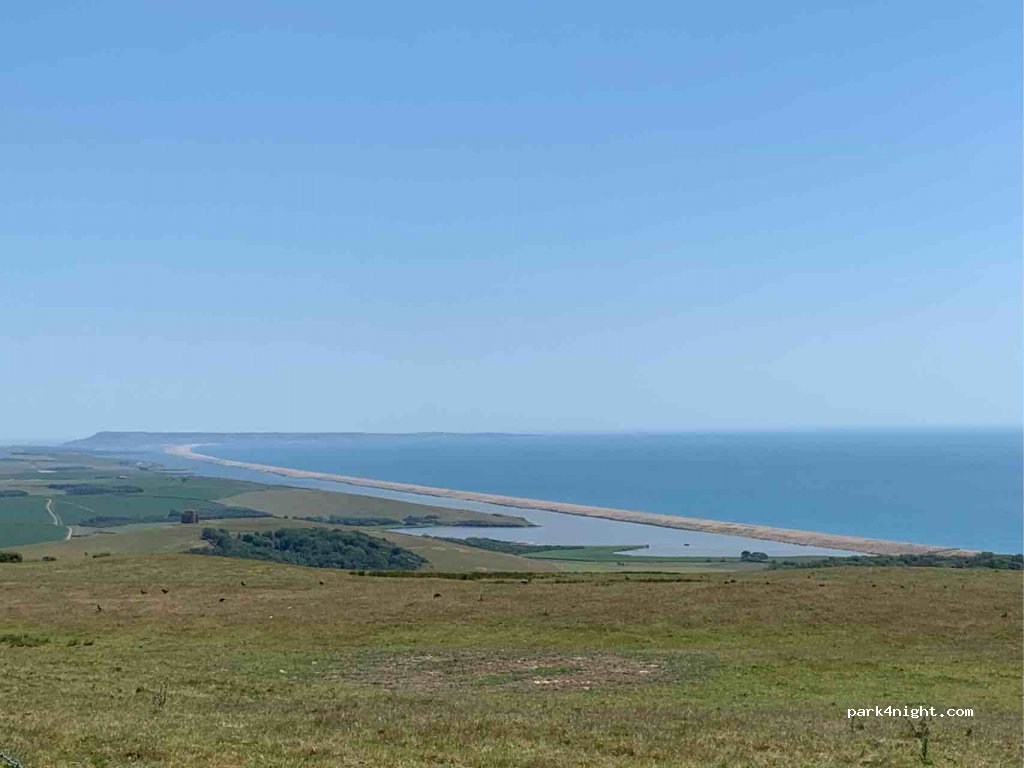 Lay-by parking with stunning views over chesil beach, the bouncing bomb practice area. Also public footpath up to abbotsbury castle with more amazing views of Abbotsbury and the surrounding area. Ice cream van is in the lay-by today too.
