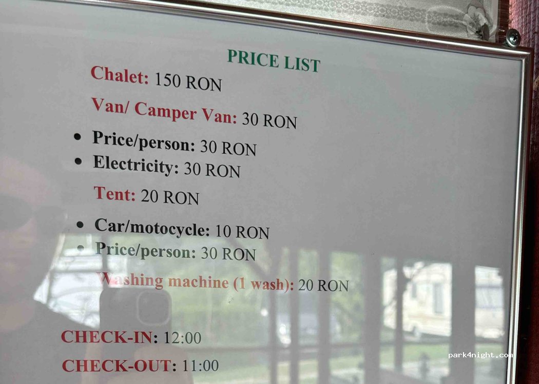 Camping zadbany, przygotowane miejsca pod samochody. Można też rozbić namiot. Jest miejsce do gotowania, lodówka, zlew. Toalety i prysznice czyste, regularnie sprzątane. Za dwie osoby i campera zapłaciliśmy 75 RON za dobę. Można dokupić prąd za dodatkowe 25 RON.