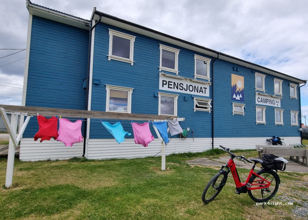 een geweldige plek. De douches zijn schoon en héérlijk warm. Wassen en drogen, de eigenaar kwam terug om een extra munt te brengen omdat het wasgoed toch nog niet helemaal droog was, TOP. ook nog een huiskamer en keuken. Alles super schoon. Het havenmuseum is een aanrader, de geschiedenis van het dorp door de jaren heen. En toen ook nog 2x de Hurtigruten die aan kwam. Super plek.