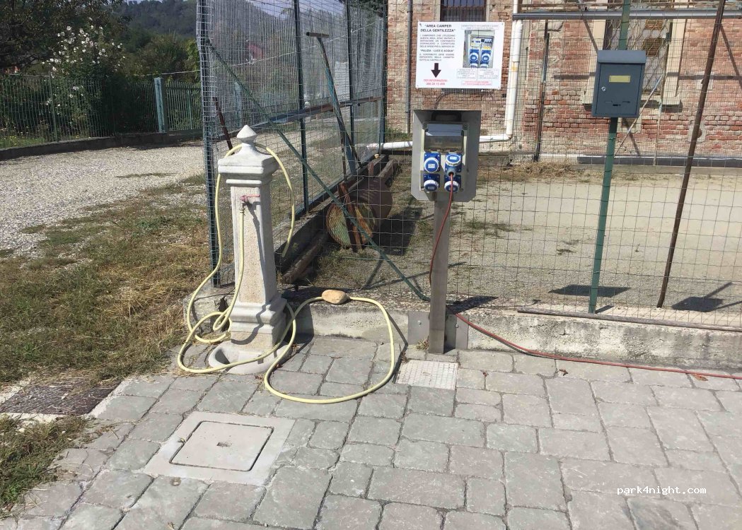 Spent a very quiet night here water wasn’t working when we arrived but we didn’t need it. Gentlemen came early morning and fixed it. 16amp electric included. Thank you to the municipality for this beautiful Sosta €5 minimum donation into the post box provided by the water tap.