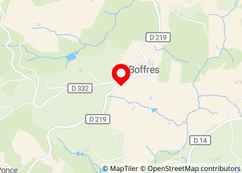 Nuit très calme sur ce grand parking plat derrière la mairie. À proximité, l'auberge de Boffres tenue par une jeune équipe nous accueille pour un bon repas.