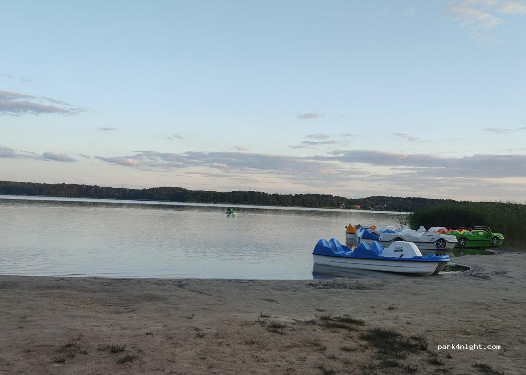 Platz am Wasser, aber keine schöne Badestelle, da modriger Einstieg und sehr flach. Belebter Zeltplatz, sanitäre Einrichtungen OK, Preis 110PLN/ Nacht 1 Camper 4 Erw., Duschen kostet extra, Imbiss vorhanden. In der einen Nacht war es ruhig, in der wir dort waren, obwohl der Platz gut belegt war.