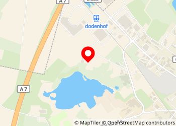 Netter See, nicht zu voll, ruhig gelegen. Im hintergrund ist eine Autobahn zu erahnen.