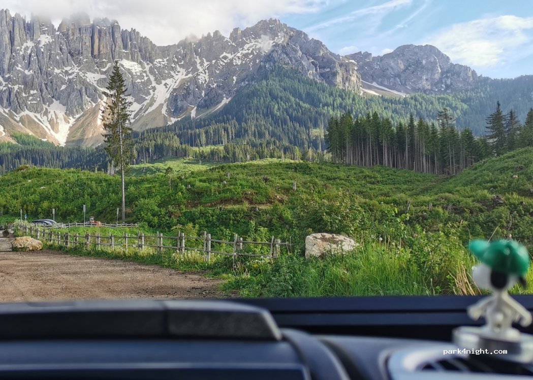 Für 30,- € kann man hier auch übernachten. Nur Barzahlung möglich! Keine Ver- und Entsorgungsmöglichkeiten, die Toiletten sind nachts geschlossen. Dafür reichlich Platz (Anfang September standen nur 2 Wohnmobile über Nacht dort) und eine fantastische Sicht auf das Latemar.