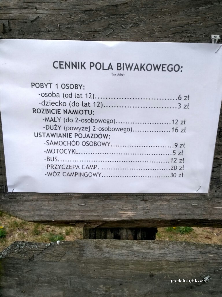 Car 9pln, caravan 20pln, camper 30pln, motorcycle