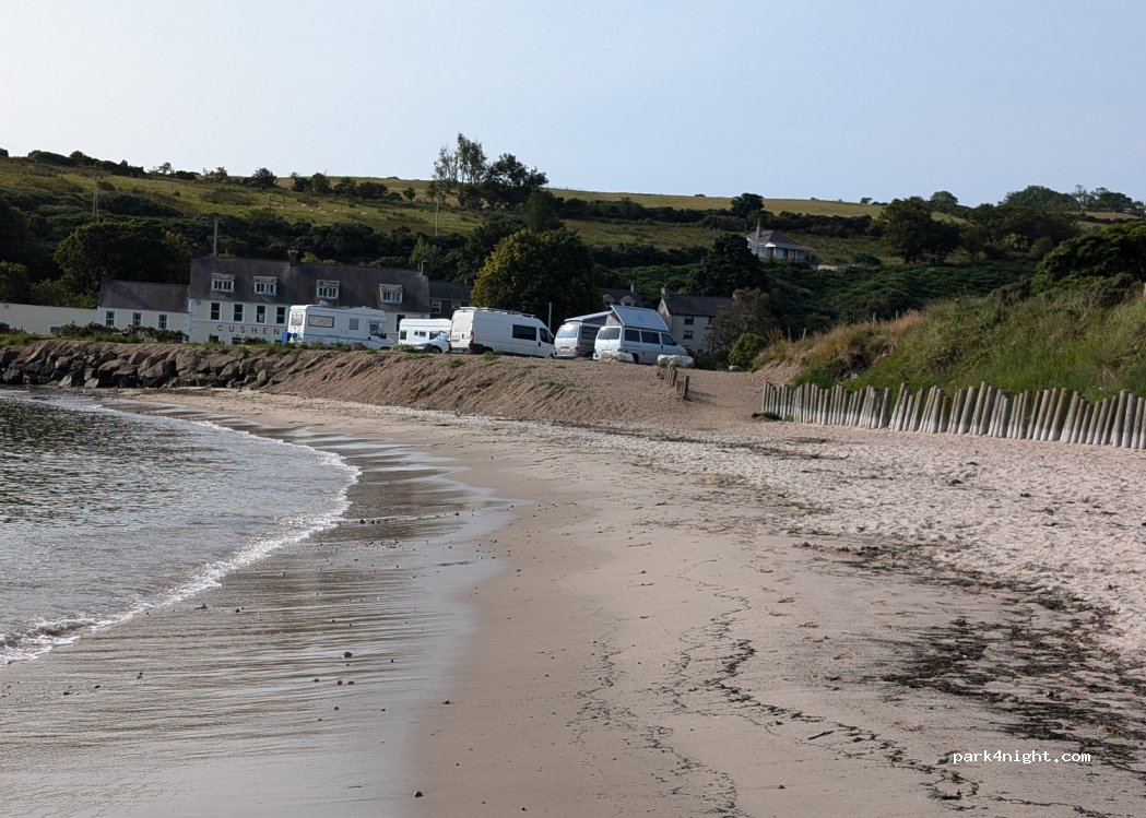 Wir haben am 29.5 hier ruhig und windgeschützt geschlafen, KEIN Verbotshinweis für das Übernachten. Eine Entenfamilie hat uns am Parkplatz begrüßt. Die Caves sind teilweise gesperrt, jedoch bei Ebbe ein Teil zu erkunden. Mülleimer vorhanden, Pub gleich gegenüber.