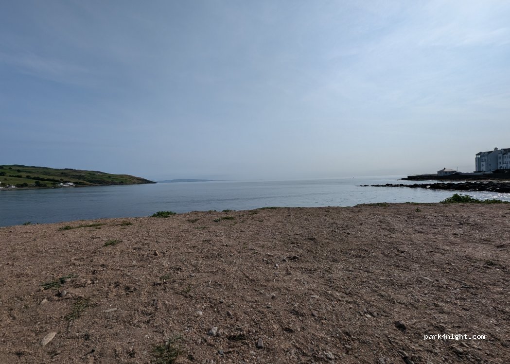 There are no restrictions on overnight parking here. We spent a peaceful night overlooking the bay. The town is delightful with a nice pub and tea room.