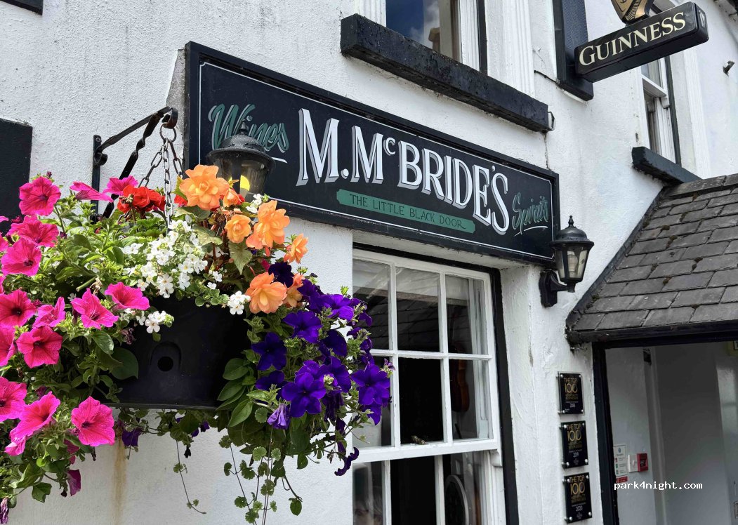 Lovely place to stay. Signe says no overnight parking but a local said it would be ok. Pub across the road sells the best Guinness ever and the food smells good too. Avery pleasant stay.