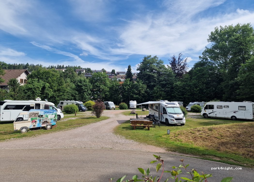 Hübsch angelegter Platz mit Holzbänken und etwas Wiese zwischen den Parkplätze. V/E vorhanden und Abfallcontainer. Mitarbeiter des Ortes kam Sonntag zum Kontrollieren! Sympathischer Ort mit informativen Spazierwegen. Preis etwas zu hoch deswegen 1 Stern weniger. Danke an Unterkirnach!