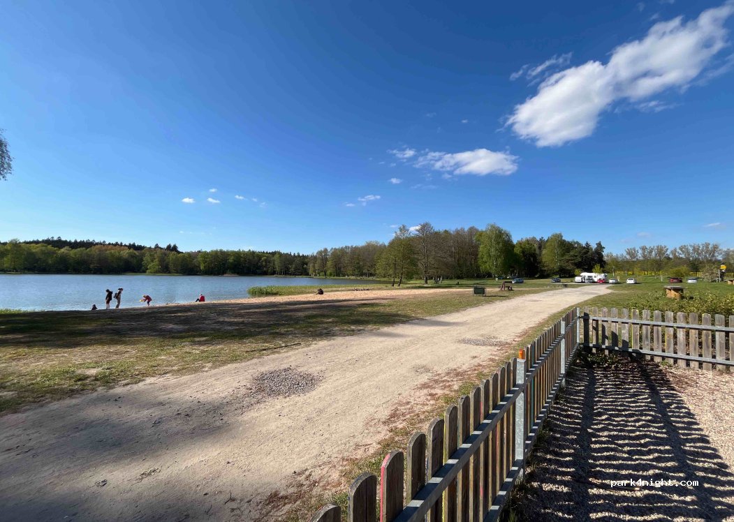 Parking au bord d’un lac. La nuit a été très calme. Plusieurs balades possibles autour du lac et dans la forêt. Possibilité de se baigner dans le lac. Poubelles disponibles.