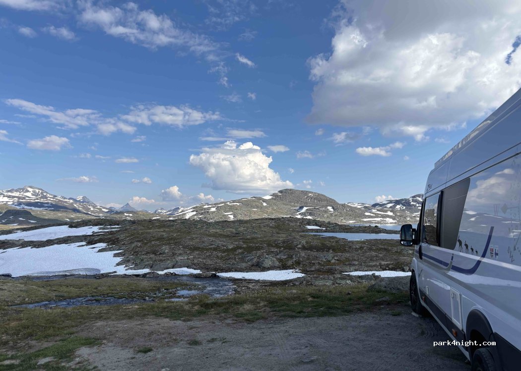 Wahrscheinlich der schönste Stellplatz auf unserer Norwegen-Reise! Die Aussicht ist atemberaubend. Platz für 1 WoMo (wir haben 7 Meter). Nachts habe ich kein Auto auf der Straße gehört.