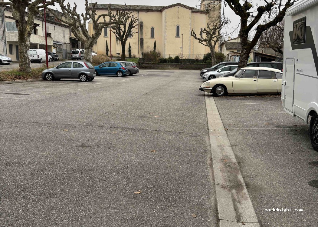 très calme, parfait pour passer une nuit. passage un peu étroit près de l'église pour rentrer mais on est passé sans problème avec un camping car de 7,50m.