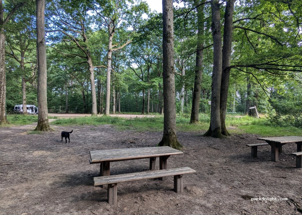 Très agréable de dormir là, c’est vraiment au milieu de la forêt, noir complet et silence la nuit. Réveil avec le chant de oiseaux. Tout ce que j’aime. Idéal pour promener les chiens, d’ailleurs ce parking sert surtout aux gens des environs qui viennent se promener avec ou sans chien dans cette belle forêt. Pas vu d’autre cc ou van, on était seuls pour la nuit.