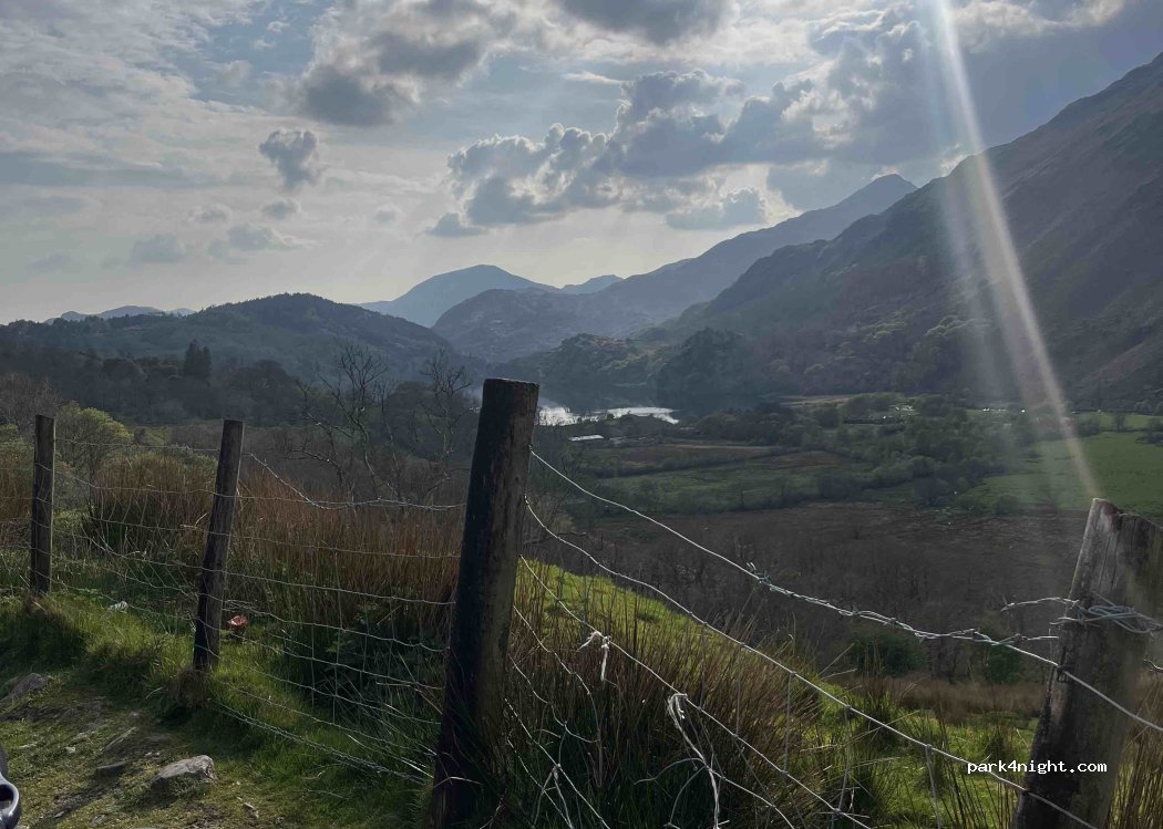 Beautiful view of Nant Gwynant. Quiet after 10pm, no signal at all but not needed in such a beautiful place