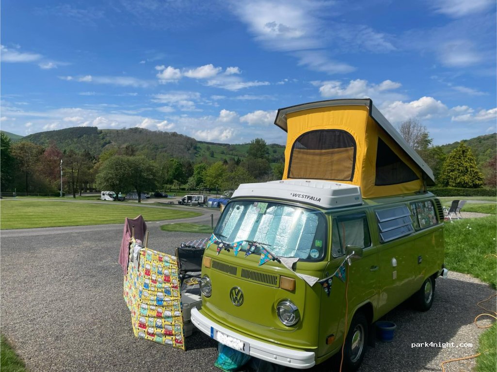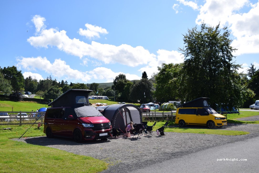 beautiful safe site with lovely hot showers and heated floors, reception are brilliant, if you wait till after half 5 6pm u normally get a reduced price, me and my son stayed in a electric pitch with fresh water for £20, lovely wee play park and stream and bar and restaurant offering takeaway food also defo stay again