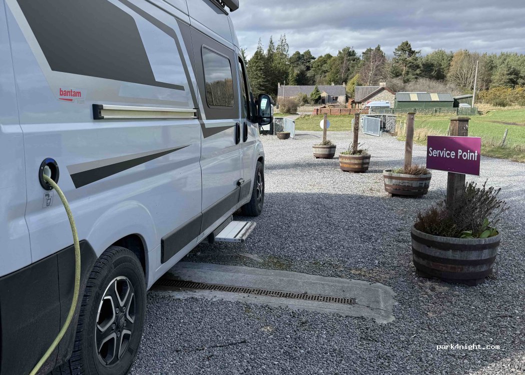 Endroit proche d’Inverness parfait pour faire les services, vidange des eaux usées et toilettes ainsi que le remplissage de l’eau pour 5£. Personnels très accueillants, ils ont aussi une petite boutique avec des produits d’entretien pour les campings cars