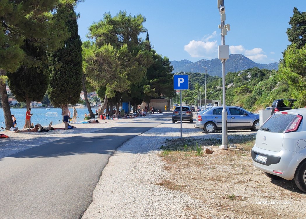 Excellent beach parking. For the day. Camping and overnight stays prohibited. Free wifi. Shade on the pebble beach until noon.