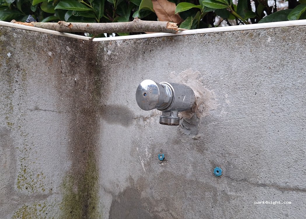 Impossible de remplir l'eau, robinet à bouton poussoir sans raccord rapide, dommage. Mais juste à côté, les toilettes publiques avec un robinet normal.