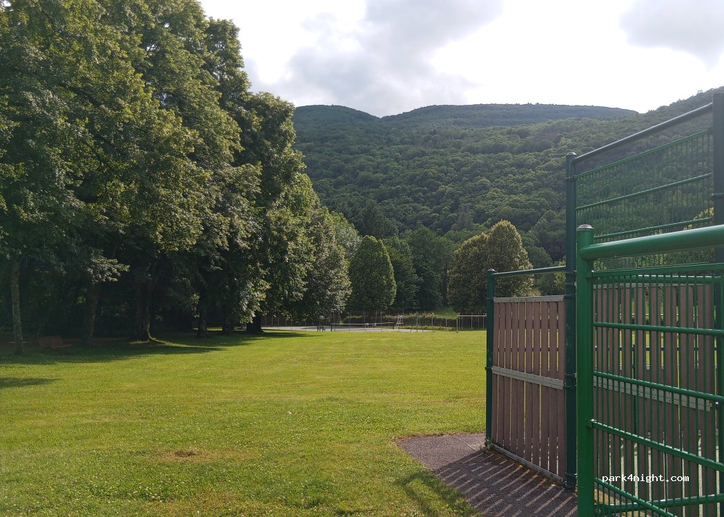 Sommes arrivés vers 19h, nos petits enfants se sont fait immédiatement des copains sur le terrain multisports. Toilettes tip top, à part les avions coin très calme. Merci à la commune.