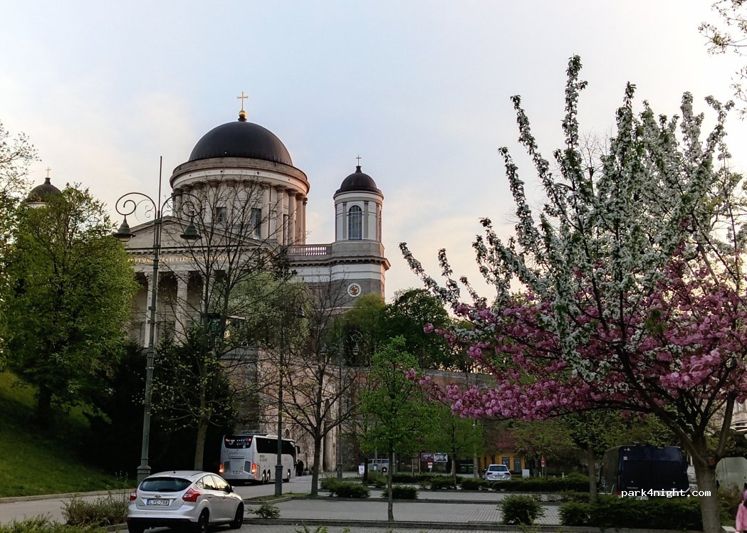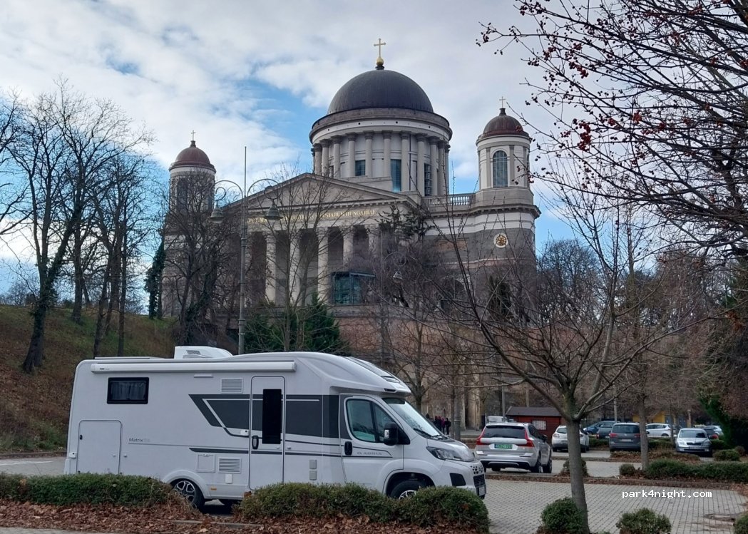 Kouzelné místo pod ostřihomskou bazilikou. Kolem parkoviště vede silnice dlážděná z žulových kostek - hlučnější. Přes den placené veřejné Wc. Delší parkovací místa jsou označena cedulí, že slouží pro autobusy. Parkovali jsme na něm., ostatní pro nás byly krátké. Katedrála je v rekonstrukci - lešení uvnitř i zvenku, ale nevadilo nám to. Fantastická je kavárna ve 2. patře baziliky s panoramatickým oknem a výhledem na Dunaj a město. Děkujeme, Ostřihomi, krásně pečujete o turisty.