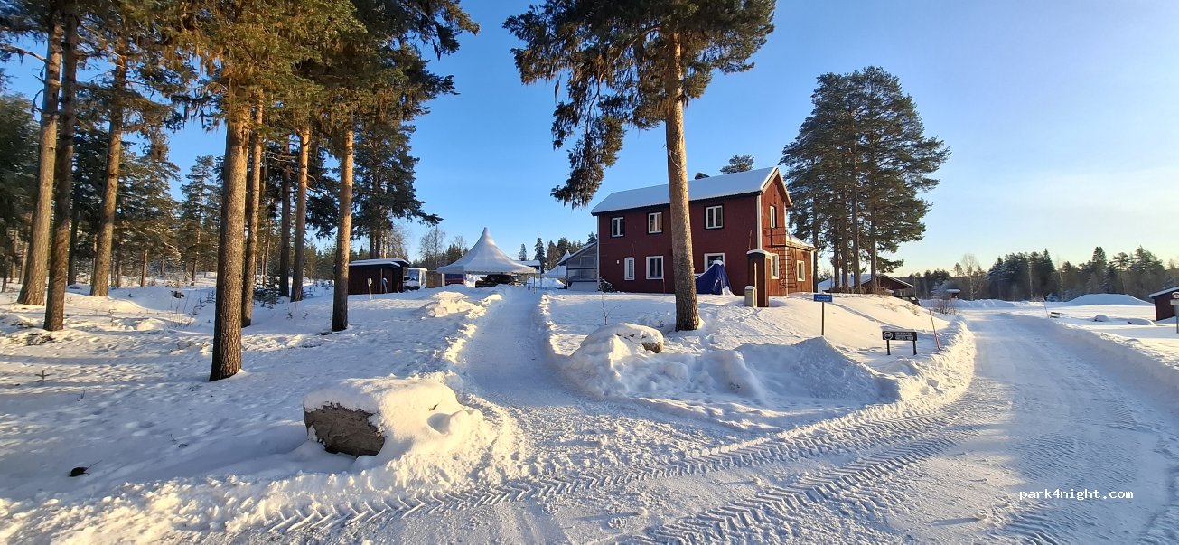 Der Platz selbst ist im Winter nicht geöffnet, aber der Betreiber bietet drei Stellplätze mit Strom für 150 SKr/p.N. an. Keinerlei Service, trotzdem sehr zu empfehlen, da die Möglichkeiten ansonsten sehr begrenzt sind in Schweden. Platz ist auf der Liste der Favoriten bei mir jetzt gespeichert.