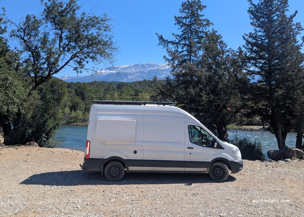 Spent a beautiful quiet night here. View of the mountains over the river. Busy in the day (we were there on a Sunday) and be prepared for fires - locals come to bbq and picnic! Tidy (for turkey). Lots of rafters on the river and vehicles on the road which can be a bit noisy. After sunset and in the morning though very quiet and peaceful - lovely spot.