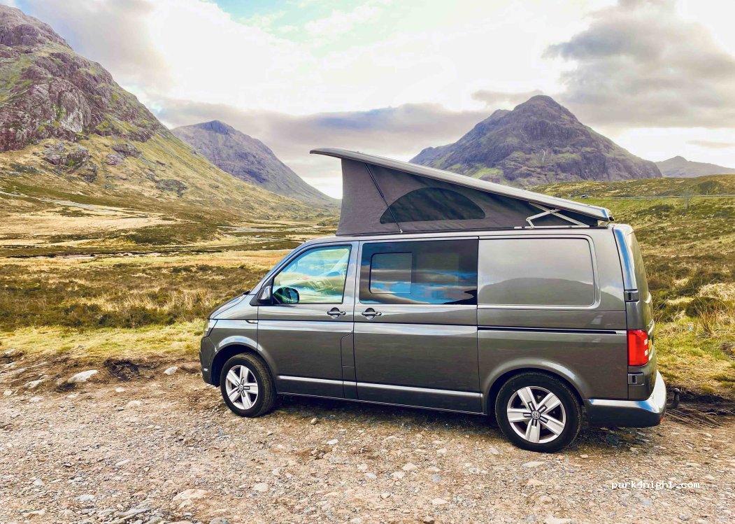 Off the A82 busy road about 50 metres towards the White House. Room for two campervans. Next to small burn. Opposite the start of the Devil’s staircase. Rough track starts on the bend on the road. No services.