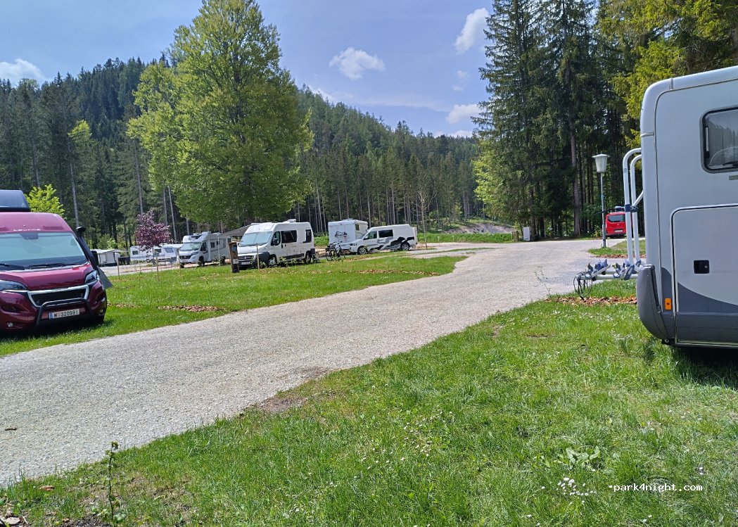 Sehr schöne Lage aber sehr teuer geworden. Eine Nacht für WoMo 45 EUR ist einfach zuviel. Sehr nette Dame gab uns den Tipp für P5 in Mariazell. Dort werden WoMos geduldet u nach 16 Uhr bis früh 9 gratis. Danke dafür !