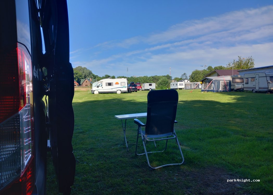 Stellplatz auf einer Wiese. Toiletten und Duschen sind einfach, aber sauber. Duschen kostet 1 Sloty/Minute und man bekommt sehr heißes Wasser. Toilettenpapier und Seife muss man selber mitbringen. Man ist in ein paar Minuten zu Fuß an einem schönen Strand. Daher absolute Empfehlung. Wir haben 20 Euro für die Nacht inklusive Strom bezahlt. (2 Erwachsene+2 Kinder).