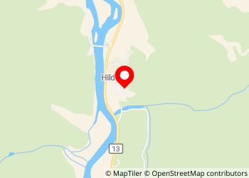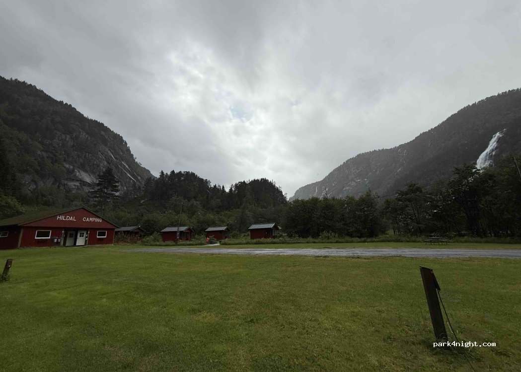 Camping Hildal. Surplombant une cascade. Croisement avec la route 13. Environ 8 emplacements avec électricité ; plusieurs emplacements sans électricité. Tentes et caravanes mixtes.