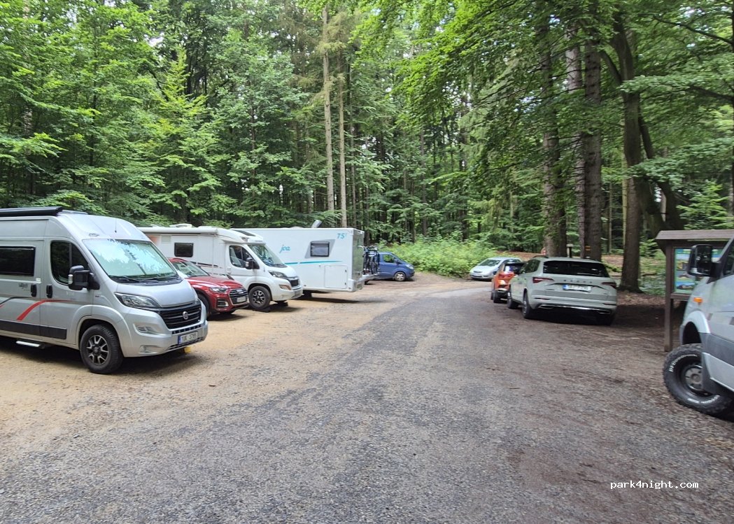 Parkeerplaats voor schitterende wandeling tussen de indrukwekkende Hruboskalsko rotsen. Overdag een komen en gaan van wandelaars. s'nachts heel rustig. Goed geslapen, geen voorzieningen.