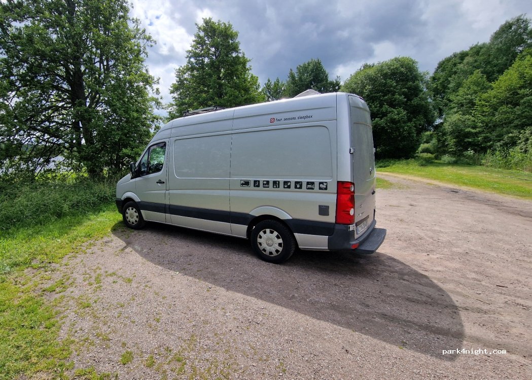 Ein toller See lädt zum baden ein. Das Campen direkt vor dem Sprungturm ist verboten. Aber auf der rechten Seite (zum Wald) sind 4-5 Parkplätze, dort können keine Vans / Busse parken. Toilette (Plumsklo) ist vorhanden
