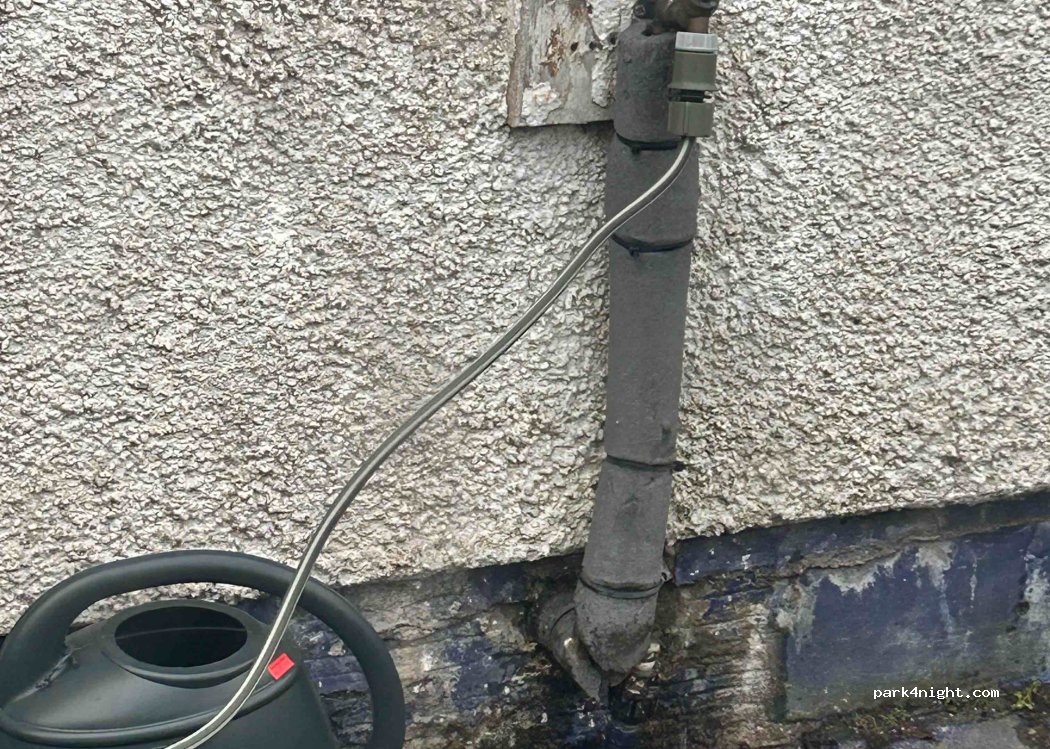Perfekt zum Auffüllen des Wassertanks. Haben in der Tankstelle nachgefragt, woraufhin uns das Auffüllen gestattet wurde :) Der Wasserdruck ist nicht sonderlich stark, das Auffüllen dauert also ein wenig.