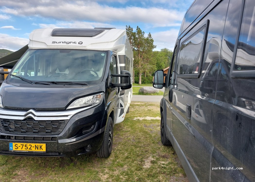 Schöner Platz mit teilweise neuen, sehr gepflegten Sanitäranlagen. Allerdings sind die Plätze nicht parzelliert, weswegen es eng werden kann. Und das Preis-Leistungsverhältnis stimmt für uns nicht ganz, ziemlich teuer (460 NOK für Van mit Strom).