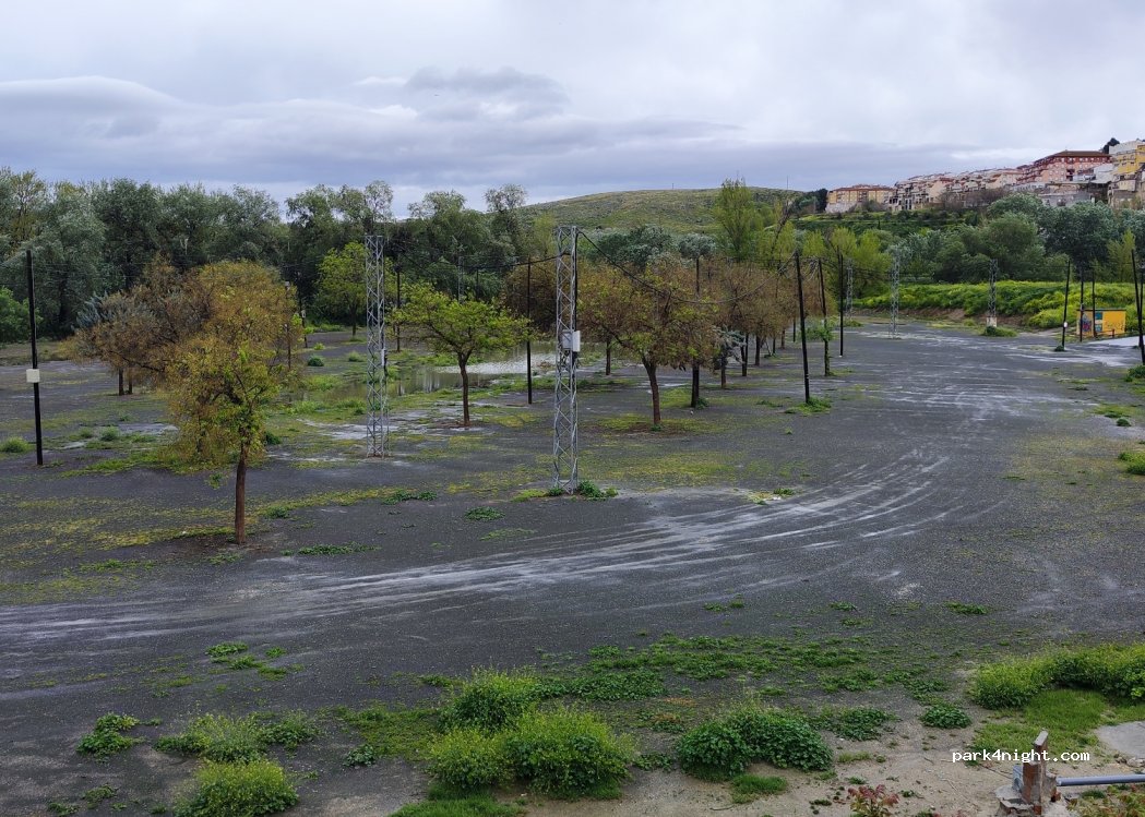 Parking du parc des expositions, aller vers le rond-point et tourner à droite avant la dernière maison à droite, où il est écrit C/Cádiz sur la carte. Endroit très calme pour passer la nuit.
