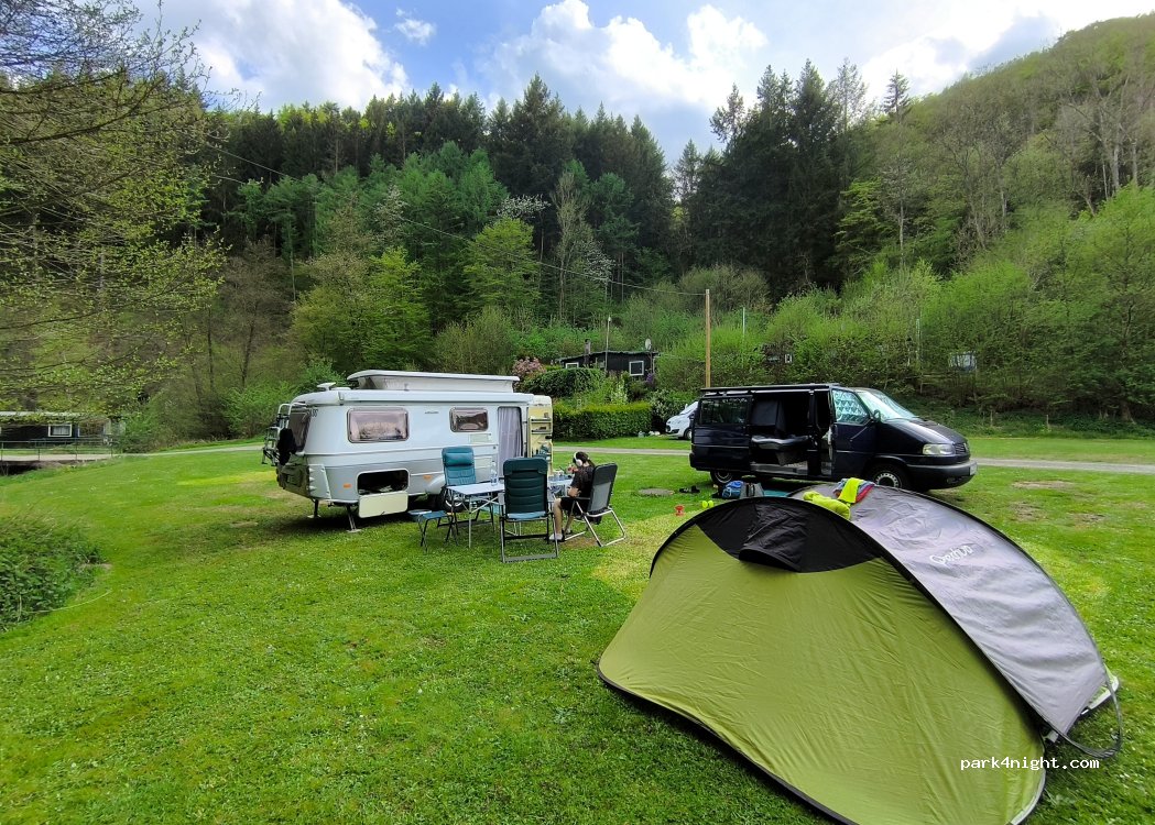 Camping Falkley! Beau camping calme à 10 km du Nürburgring. Nombreux sentiers de randonnée et de VTT dans les environs immédiats. L'endroit est parzelliert, il y a assez d'espace et des places de parking avec un banc de pique-nique. Les propriétaires sont très sympathiques et détendus. Il y a un petit restaurant où vous pouvez acheter du vin d'un vignoble local. Il y a aussi un foyer et une aire de jeux.Le parcours est situé directement dans une vallée sur un petit ruisseau qui traverse la place. Le seul inconvénient, c’est que les installations sanitaires étaient propres mais, au fil des ans, nous reviendrons dans un endroit magnifique.
