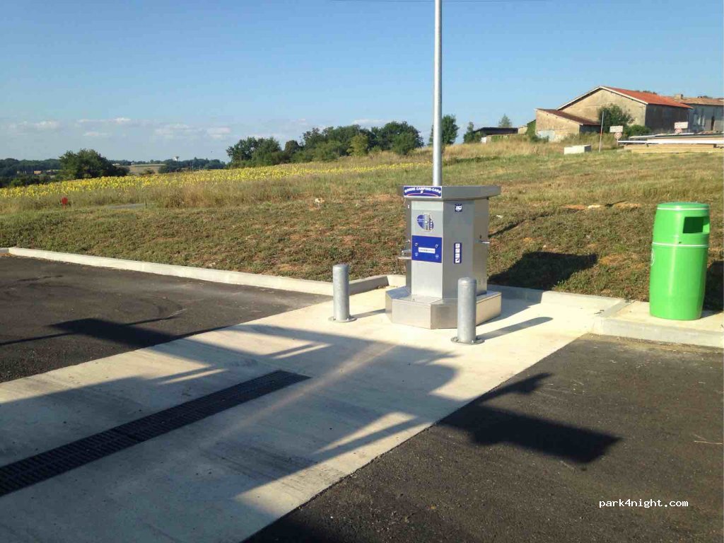 très pratique très proche de RN10- eau 2€ pour 10 mn d'eau (débit faible 10 mn env 40l). machines à laver dispo sur parking. Vidange eaux noires et grises très accessibles