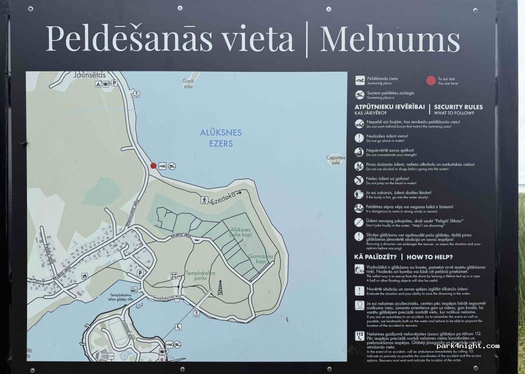 Parking at the swimming area. Dry toilets. overnight stay prohibited