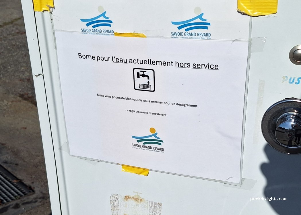Borne ne fonctionne pas actuellement, aucun service (juste vidange des eaux usées ). Possibilité de faire les services au Revard selon l'office du tourisme.