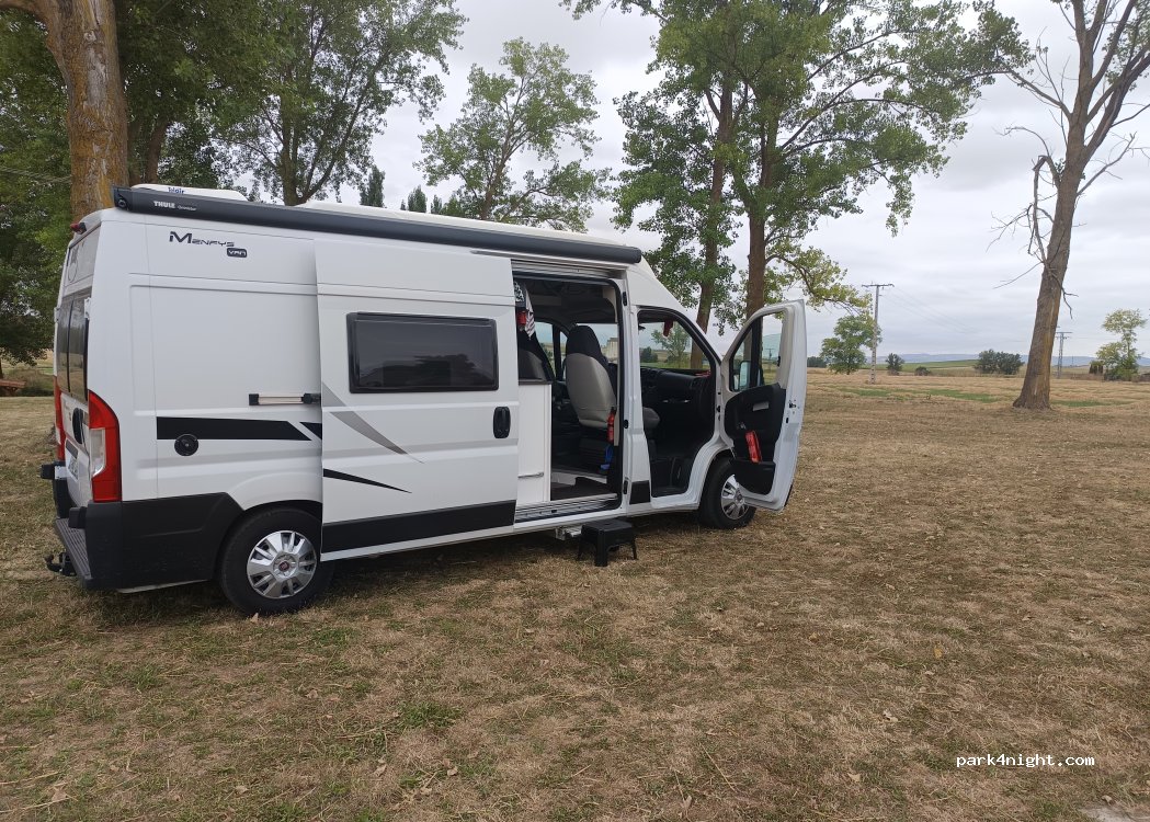 Muy tranquilo para pasar la noche, con sombras. Sin ningún otro interés. La entrada es un pequeño camino paralelo a la carretera. Por la noche parece que te pierdes, pero es seguro. Cobertura 4G.