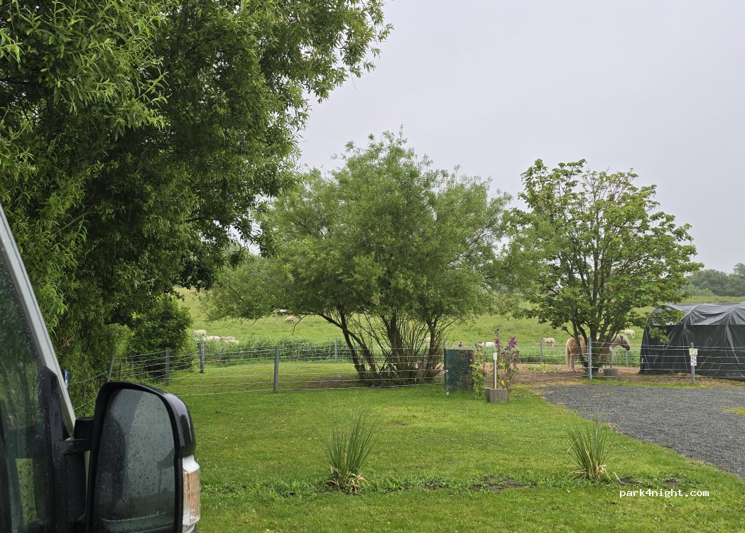 Très joli petit camping familial très bucolique. emplacements bien définis sur l herbe avec l'électricité. kitchenette, douche, WC. Payé pour un fourgon, 2 personnes, l'électricité 33 € (vidange cassette compris 3 € car pas prévu). Pas de CB mais cash ou possibilité de payer par PayPal.