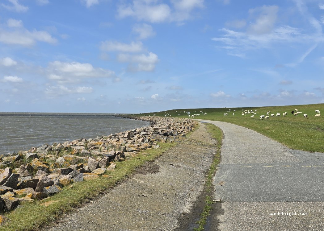 Camping tres très bien. Les places sont grandes, certaines separees par des haies d’herbes hautes. Vue sur les polders et les digues. Sanitaires impeccables. Propriétaires très accueillants . Un vrai plaisir