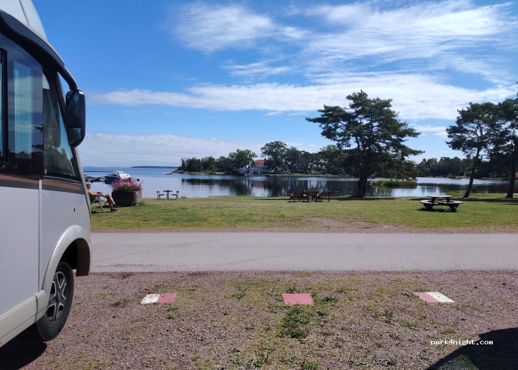 Wurden gleich von einem sehr netten Hafenmeister begrüßt. Wir hatten einen der Plätze ohne Strom. Er liegt nur 20m vom Wasser entfernt, schöne Bänke und Tische unmittelbar am Platz, alles sehr sauber. Duschen Toiletten Waschmaschine V&E Wasser, alles in einer Entfernung von 1 min. und für Stellplatznutzer ohne zusätzliche Kosten. V & E für Durchreisende 50 SKR. Das alles bei einer Top Aussicht.